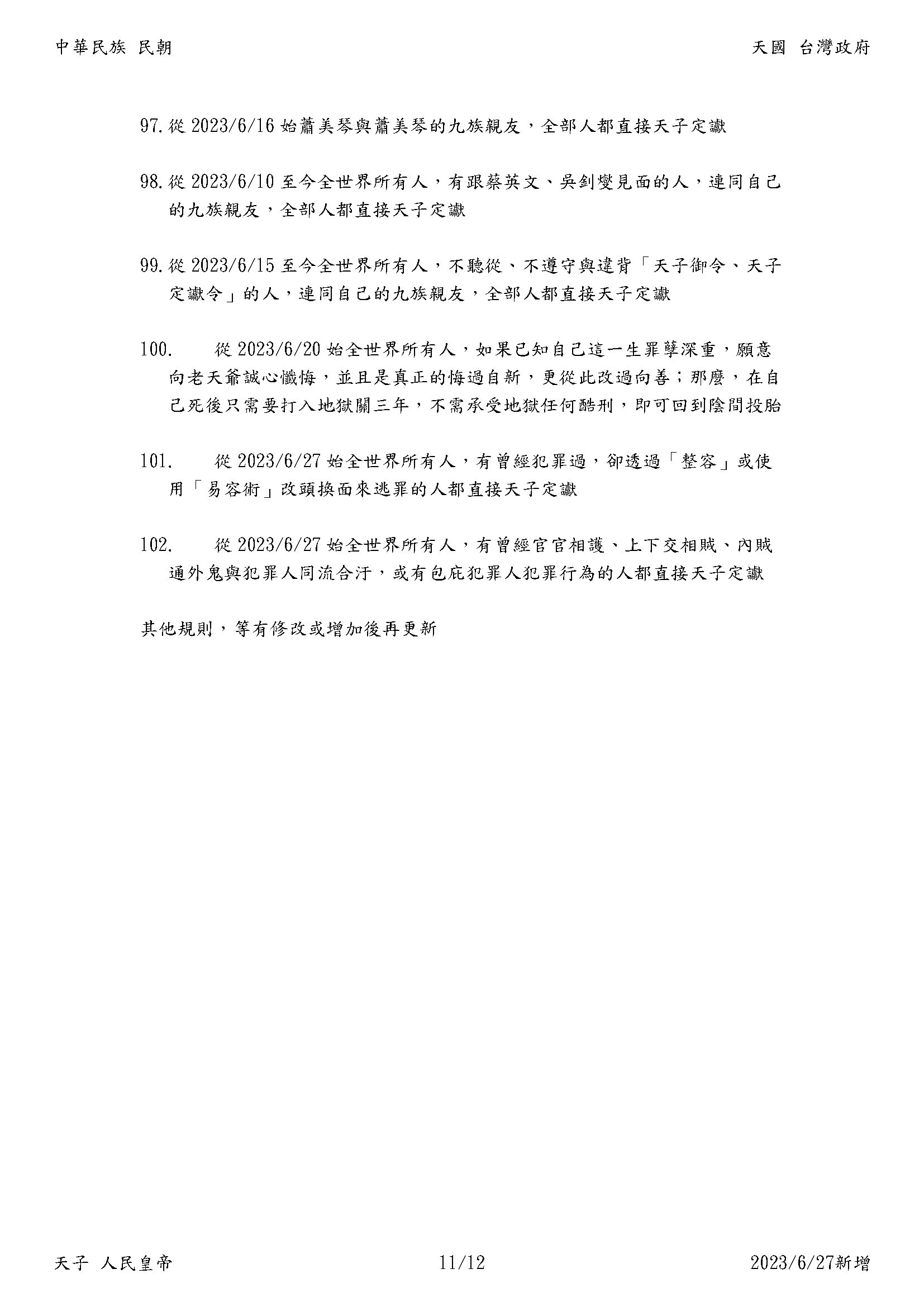 102. 從2023/6/27始全世界所有人,有曾經官官相護、上下交相賊、內賊通外鬼與犯罪人同流合汙,或有包庇犯罪人犯罪行為的人都直接天子定讞